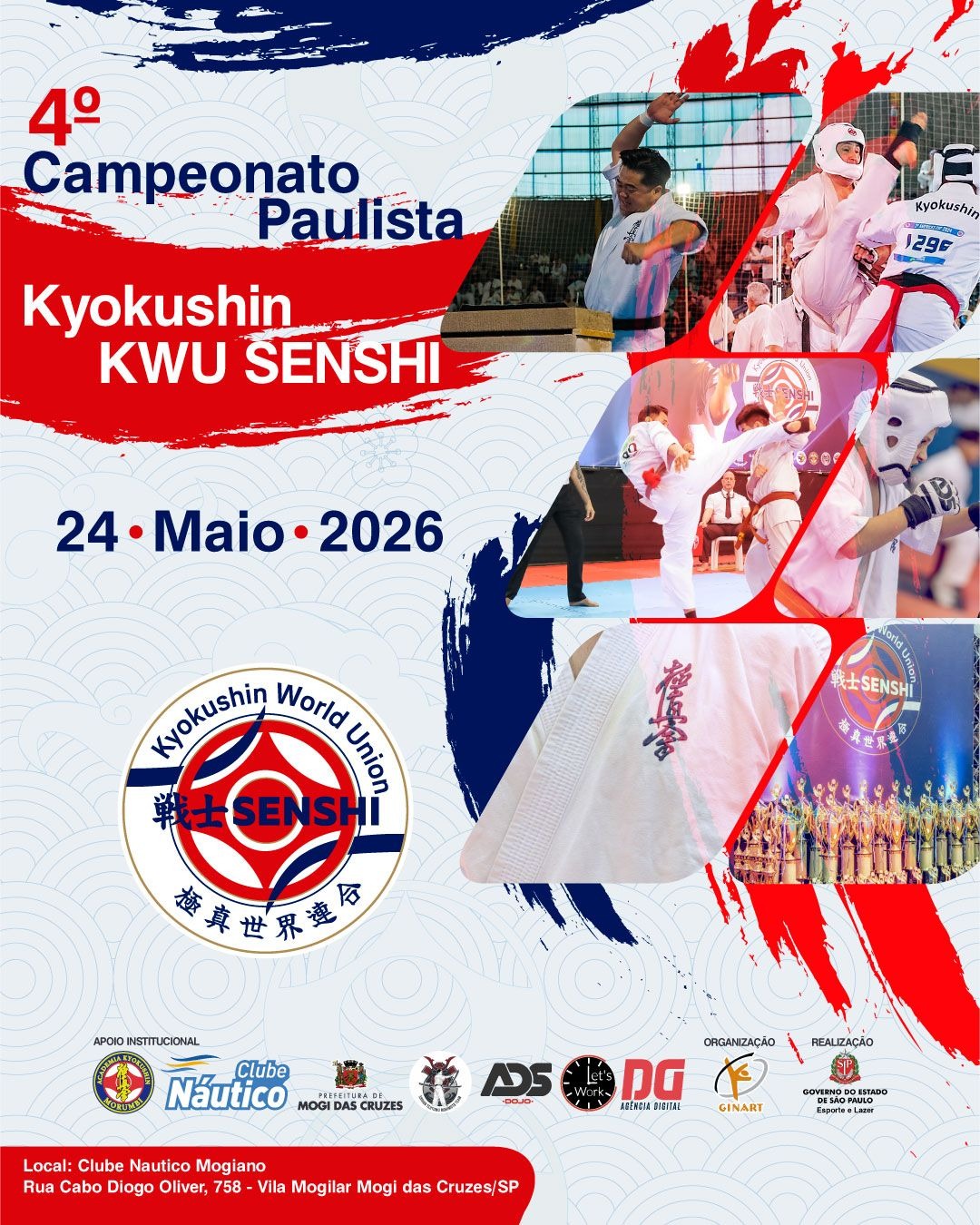 A KWU SENSHI Brazil realizará a quarta edição do Campeonato Paulista no dia 24 de maio, um dos eventos importantes do calendário regional da organização no país. A competição acontecerá na cidade de Mogi das Cruzes, no estado de São Paulo, reunindo atletas e equipes para mais uma oportunidade de promover o desenvolvimento competitivo e fortalecer a comunidade das artes marciais.